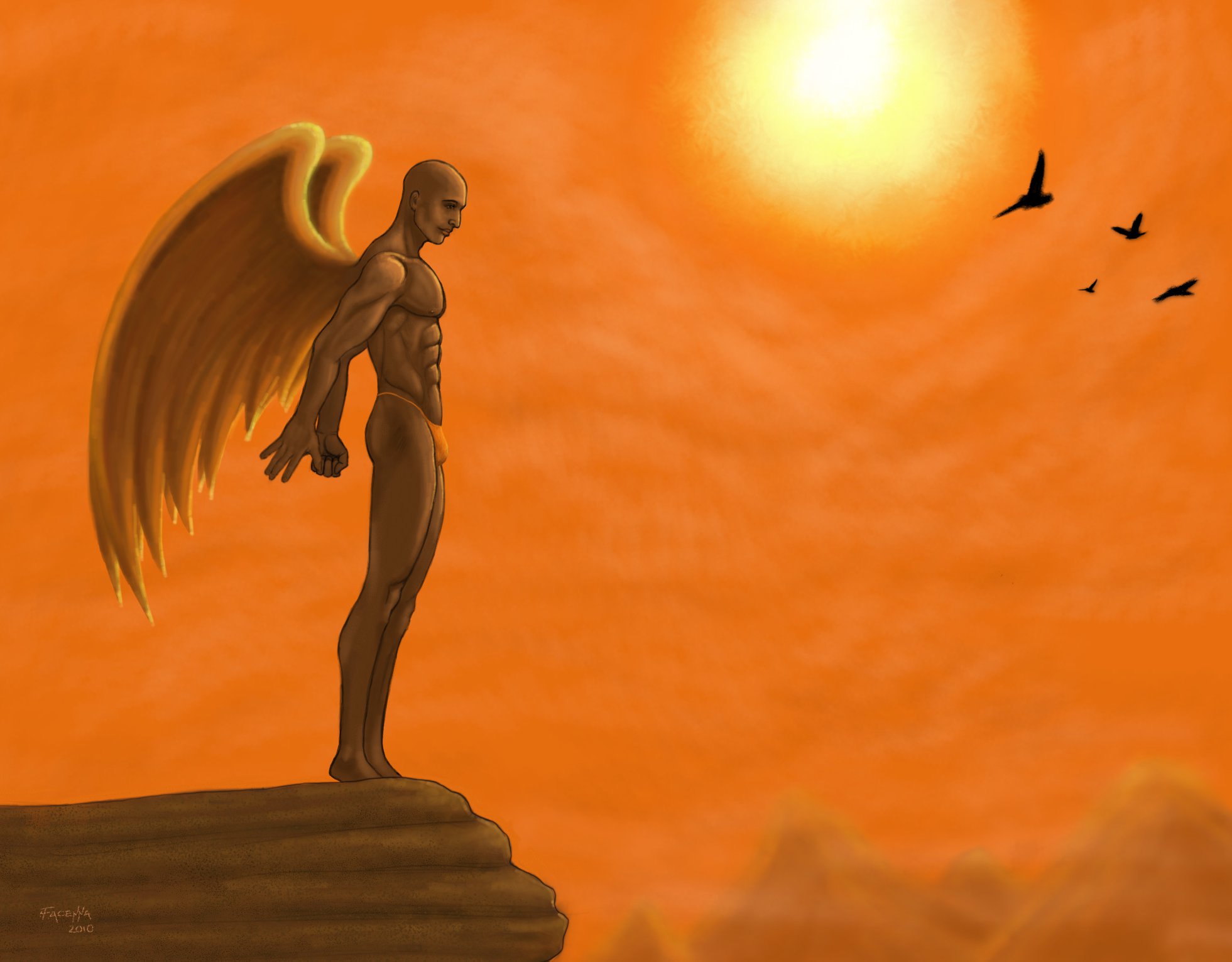 After the battle, two Gladiators were sharing the light and warmth of a burning campfire.